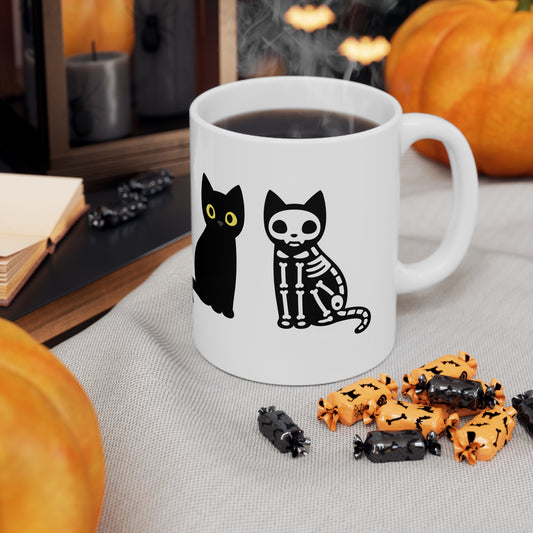 Black Cat Skeleton Mug, Halloween Gift For Black Cat Owners, Coffee Mug