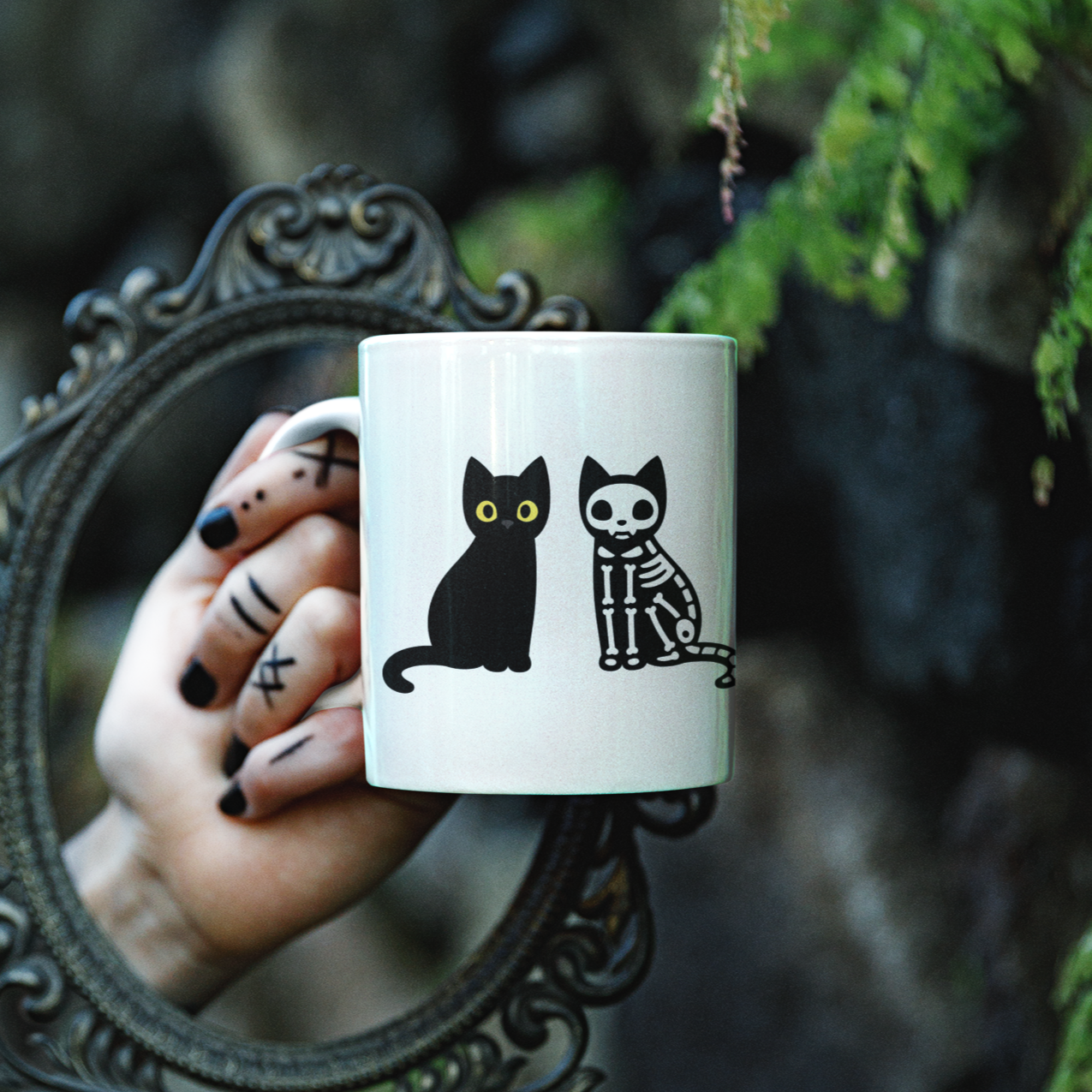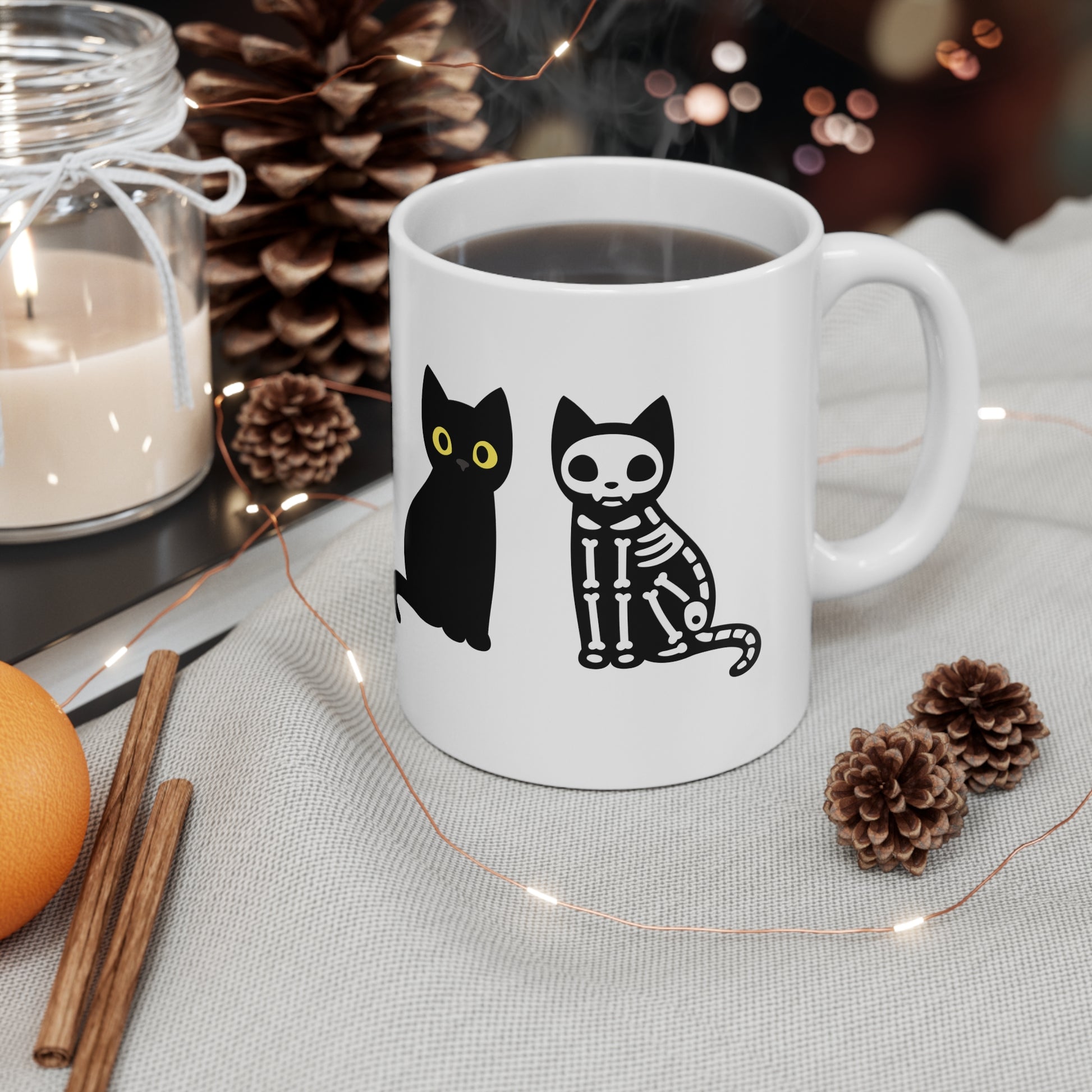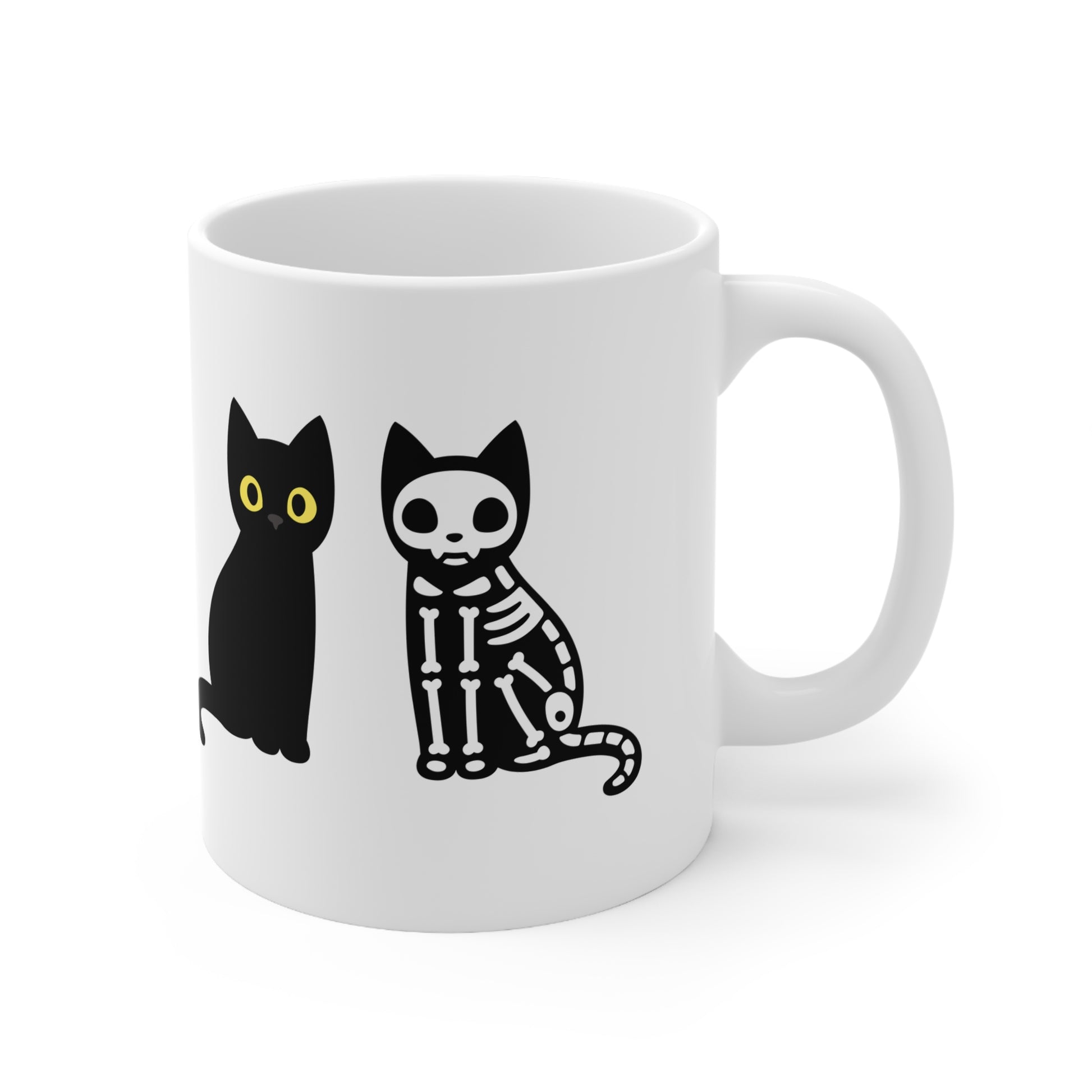 Black Cat Skeleton Mug, Halloween Gift For Black Cat Owners, Coffee Mug